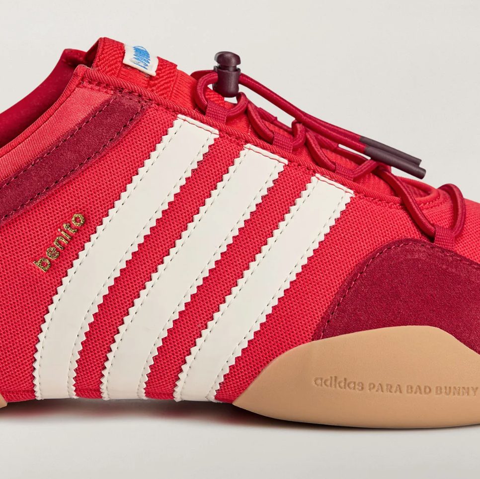 El nombre «Flamboyan» hace referencia al árbol flamboyán, conocido por su intenso color rojo y profundamente vinculado al paisaje y la identidad cultural de Puerto Rico. Como ya es habitual en las colaboraciones de Bad Bunny con adidas, el calzado va más allá de la estética y funciona también como una extensión de su arte y persona.