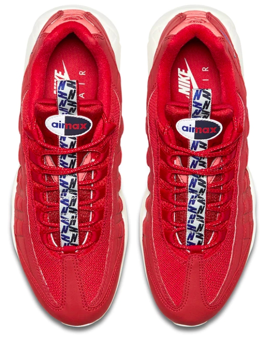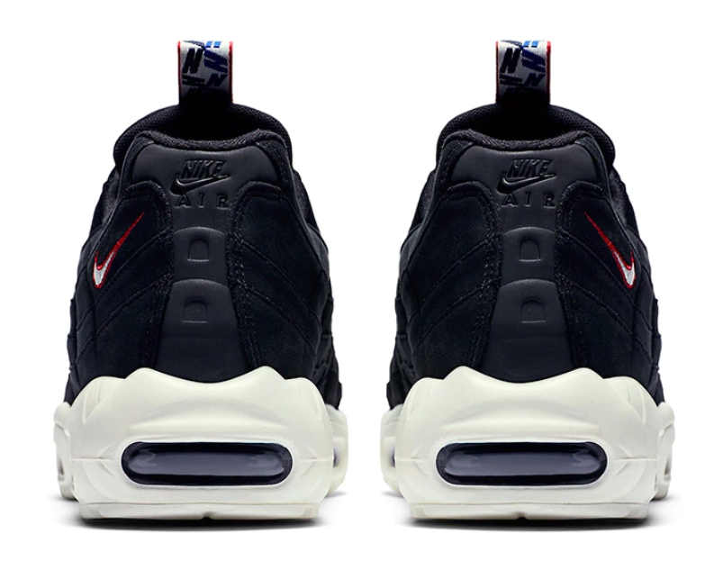El nuevo modelo de Nike Air Max 95 estará disponible en tres colores: rojo, negro y blanco, y ese toque retro mencionado anteriormente se puede apreciar en su lengüeta, en la cual podemos ver una correa que la recorre desde la parte superior, y que cuenta con logotipos en forma de N en los colores azul y rojo.