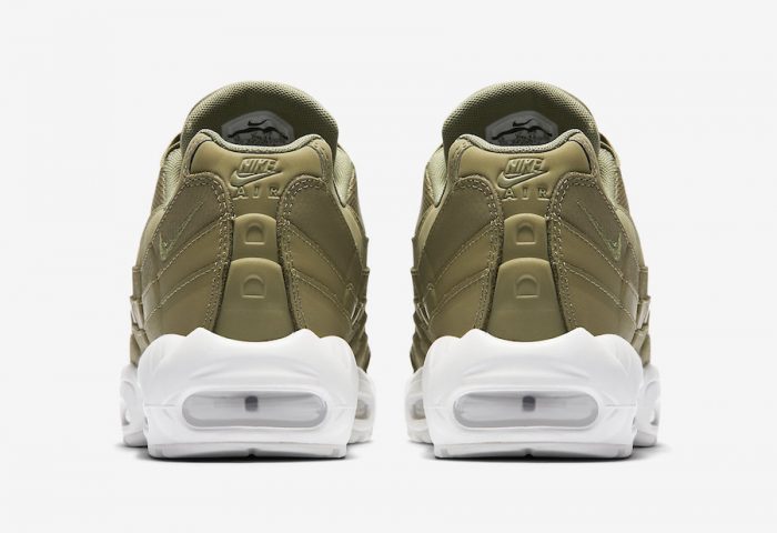 Empezando por las ‘Trooper Green’ presentan un color verde caqui con una parte superior a base de tejido de malla y nylon, mientras que en los laterales incorporan el cuero. En cuanto a la suela, donde se encuentra como siempre la unidad de aire, nos encontramos con un clásico color blanco. Eso sí, el detalle más característico vendrá con la tira de color plateado de tejido que brilla en la oscuridad.