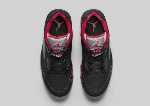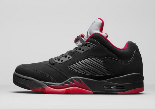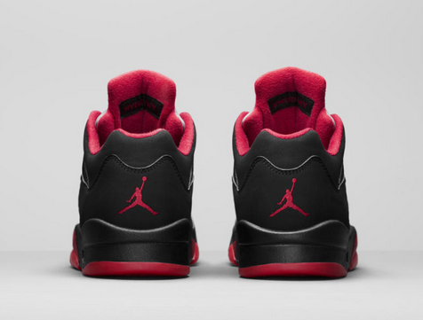 Por último es el momento de hablar del modelo que innova y rompe con lo clásico, la versión low de las Jordan V. La zapatilla llegará cubierta por una capa de ante al igual que los últimos diseños en negro de las Air Jordan V High. Como en las AJ II, en este colorway el negro es protagonista seguido del rojo en los detalles.
