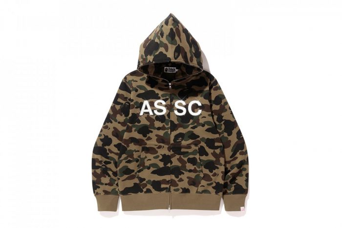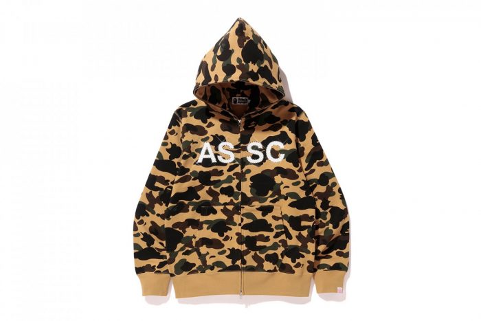 Ambas firmas han querido centrar su colección en las prendas de la parte superior, sacando a la venta hasta tres modelos de sudaderas, varias camisetas y unas gorras. En todos los productos triunfa el patrón de camuflaje tan característico de la firma nipona, aunque sin dejar a un lado el logo de ASSC. Además, la hoodie que representa las siglas de esta firma cuenta con diversos cristales de Swarovski acompañando a la serigrafía.