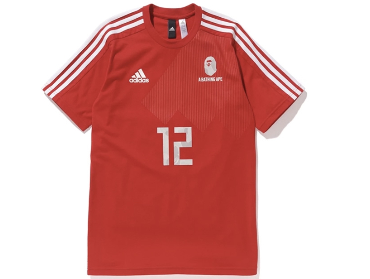 Como podemos apreciar, tanto la camiseta como la chaqueta llevan los logotipos de ambas marcas en su parte delantera, y en la parte posterior de la chaqueta se puede observar el característico logo de BAPE. En el caso de la camiseta tanto en la parte delantera como en la parte posterior está estampado el número 12, el conocido como número de la afición.