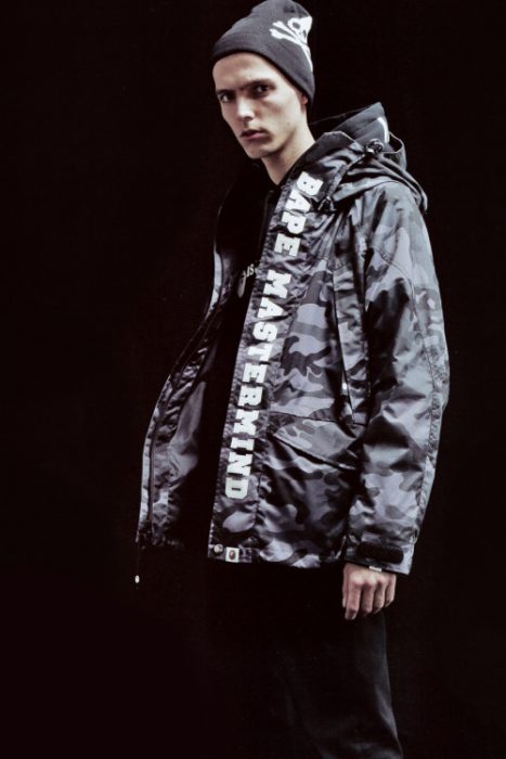La colección despliega los elementos más característicos de cada marca. Por ejemplo, no podían faltar el mono y el camo de BAPE, pero también encontramos como motivo decorativo las calaveras y el negro de Mastermind JAPAN. Entre las prendas de esta colaboración figuran chaquetas, sudaderas, camisetas, pantalones y gorras. Y todas ellas pensadas para los meses más fríos que están a la vuelta de la esquina.