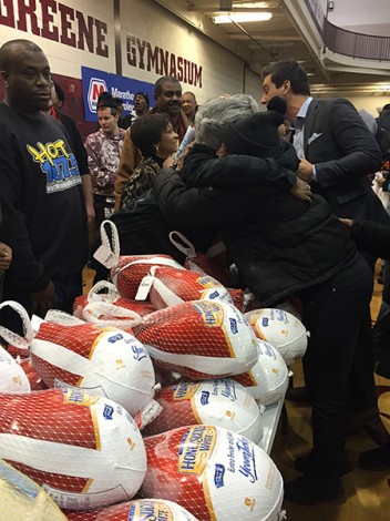 Como otros muchos artistas acostumbran a hacer, el de G.O.O.D. Music ha acudido a un instituto de Detroit para regalar mil paquetes de pavo con maíz, judías verdes y patatas dulces.