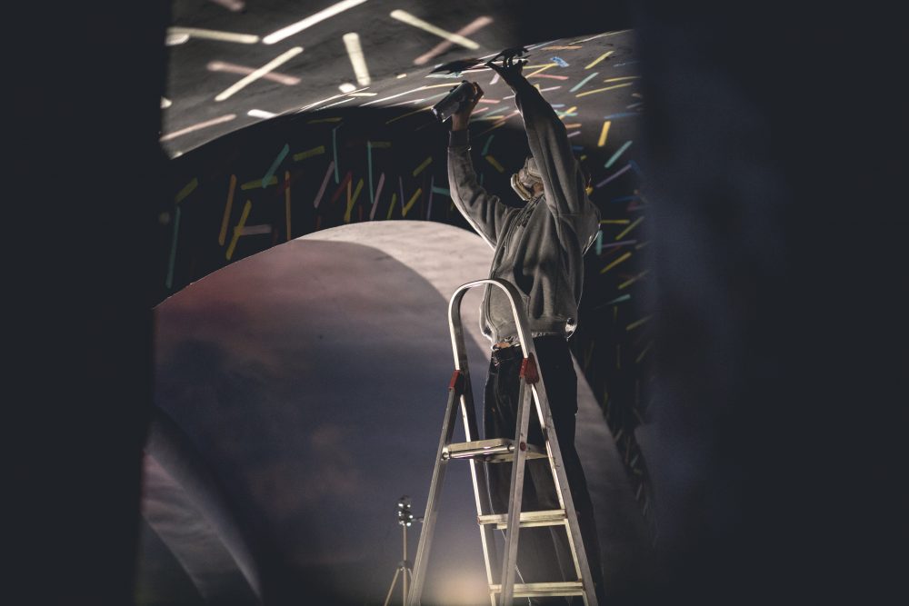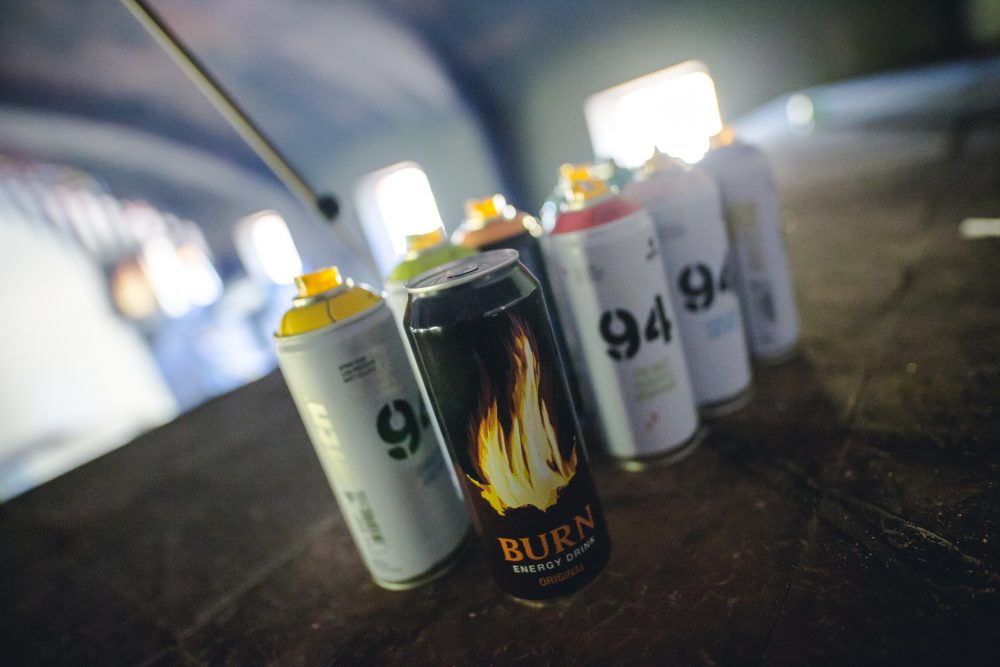 Quedamos en Moncloa por la tarde. Nos recibieron mientras que iba llegando el resto de la gente y fuimos subiendo a 3 microbuses más pepinos que el Ferrari x L&V x Supreme del crío este de 15 años (en este artículo te contamos toda su historia). Antes de subir nos hicieron firmar que si nos robaban algún órgano no fuésemos a reclamarles luego, y que cedíamos nuestros derechos para salir en un vídeo (menos mal que habíamos cogido la póliza de órganos en el seguro justo antes). En el asiento del bus nos esperaban unos pequeños obsequios de Burn, pintura fluorescente, una mascarilla al rollo Keith Ape, una mochila…