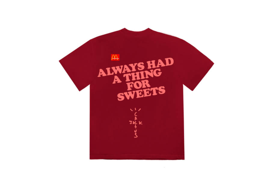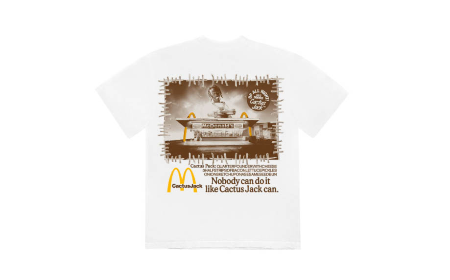 Sin embargo, hay mucho más material en este lanzamiento que dicha camiseta. El bueno de Travis ha querido mostrar lo enamorado que es de la empresa de la M gigante, por ello nos ha traído numerosos guiños, desde los boxers con el estampado clásico de los McMuffin hasta la bandeja o la gorra, tan habitual en los empleados de la firma.