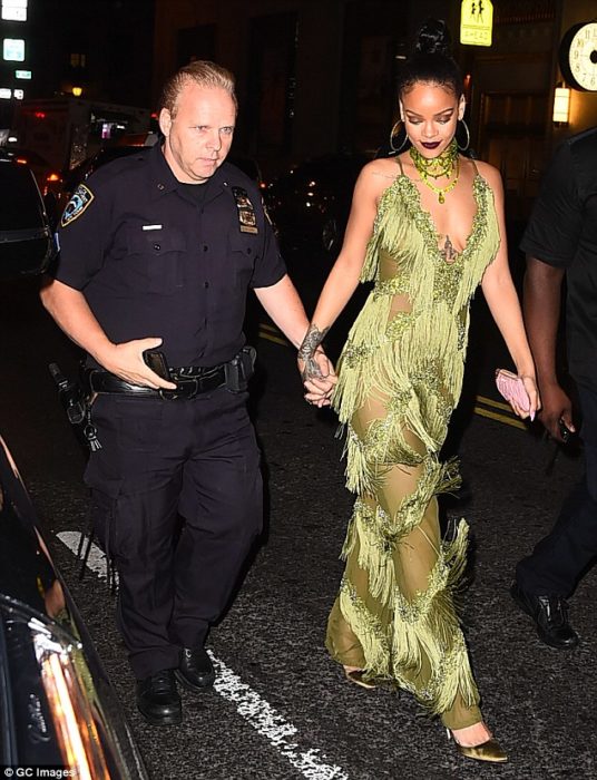 Si todo esto ocurría el pasado domingo, al día siguiente, lunes, ya volvíamos a tener noticias de la pareja, a la que se había visto cenando en un restaurante de Nueva York. Rihanna llevaba por outfit lo que algunos medios han calificado como «mini vestido«, aunque muchos usuarios en la red tienen una opinión distinta acerca de la procedencia del modelito: