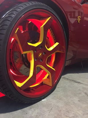 713 Motoring, la empresa encargada de preparar el coche en Houston, lo tuneó de arriba a abajo: pintura roja por todas partes, llantas con la forma del rayo, e incluso un sistema de luz que proyecta el logo de Flash cuando abre la puerta.