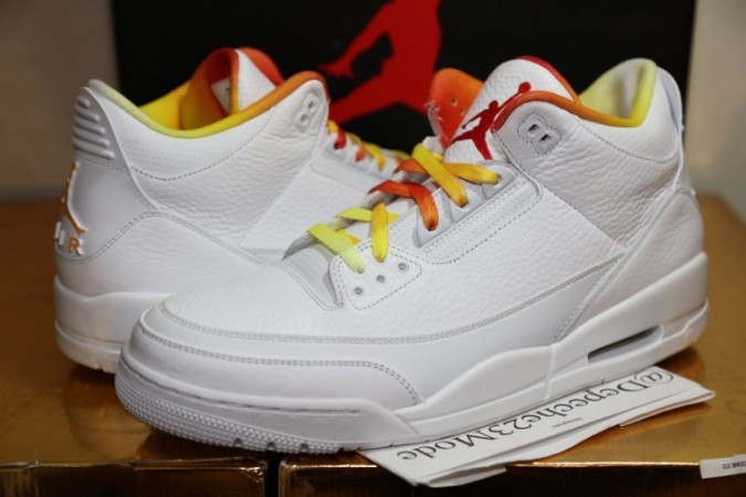 Por si nunca antes las habíais visto, las Air Jordan 3 ‘Drake VS Lil Wayne’ se presentan tal y como las llevaron los de Young Money en su día, un par de color blanco y el otro en negro, ambos con el naranja como color secundario en el logo de Air Jordan y de la gira así como en sus cordones.