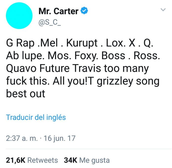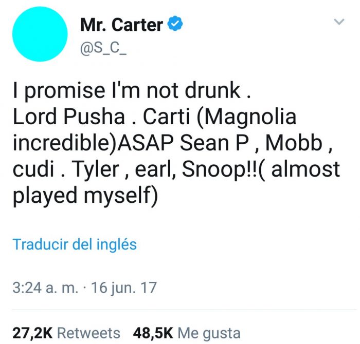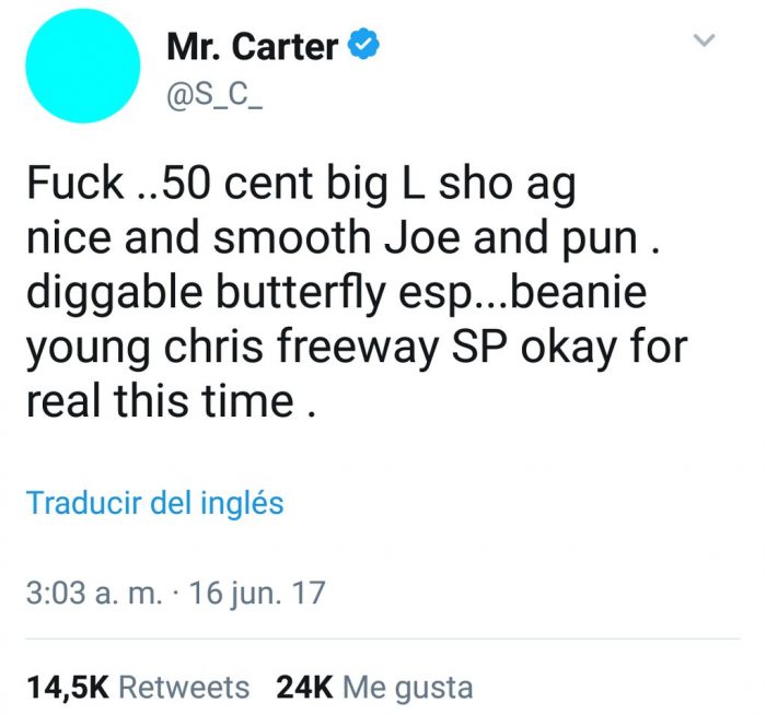 Todas estas menciones se nos hacen un poco extrañas no porque dudemos del amor que tiene para dar el de ‘The Blue Print’ sino porque el artista neoyorquino es muy poco dado a utilizar sus redes sociales, sobre todo Twitter.