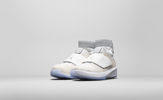 Rompiendo con lo cotidiano, la marca se ha lanzado a la piscina con el ‘Laser Pack‘, compuesto por dos de sus modelos clásicos, las Jordan I y IV y el relanzamiento de las Jordan XX. La singularidad de este lanzamiento reside en sus colorways donde predomina el blanco con motivos tribales en un color más crudo. Dentro de los motivos se pueden diferenciar algunas figuras conocidas como el «Jumpman«.