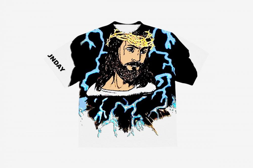 Así que no le ha quedado más remedio que crear otra cápsula de estilo deportivo inspirada en los años 90, con dibujos de temática cristiana y frases bíblicas.