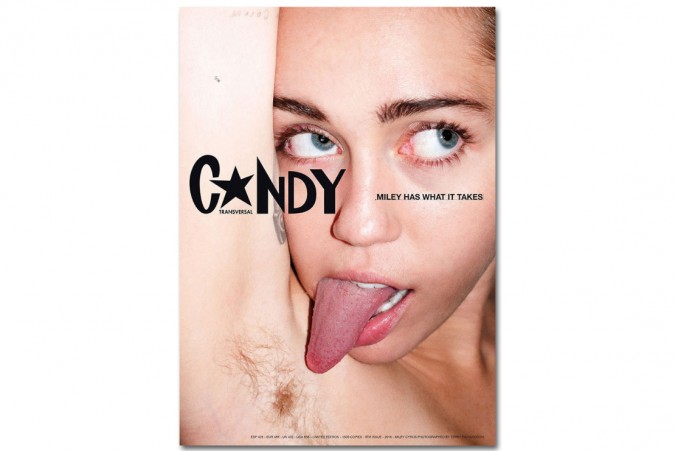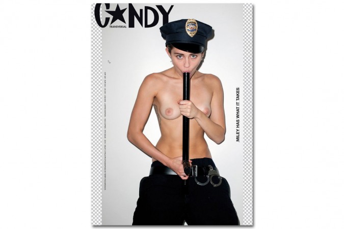 La sesión consiste en nueve portadas para CANDY Magazine en las que podríamos decir que Miley da rienda suelta a sus instintos más primarios, posando como Dios la trajo al mundo, vestida de policía o con un arnés junto a las palabras ‘Miley tiene lo que hay que tener‘. Eso no lo dudamos.