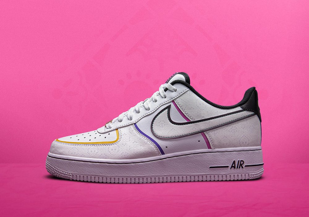De esta forma, Las Air Force 1 están inspiradas en La Calaca -esqueleto-, y aunque el blanco es el protagonista, no podemos pasar por alto que el azul, el negro y el amarillo forman parte de las costuras.