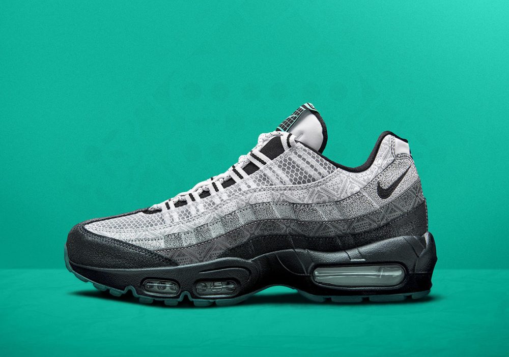 Mientras que Las Nike Air Max 95 son justo el término medio -cromáticamente-, con su degradado en gris y negro, además de que este sí que está 100% dedicado a La Catrina.