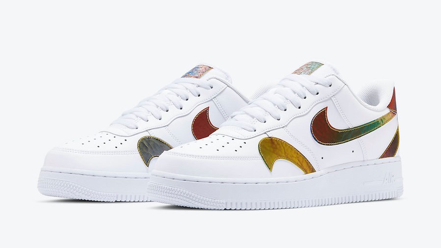 Quizá esta decisión se ha basado en que lo más importante de estas Air Force es su «estampado» inédito, en el que el Swoosh iridiscente roba todo el protagonismo a cualquier otro detalle.