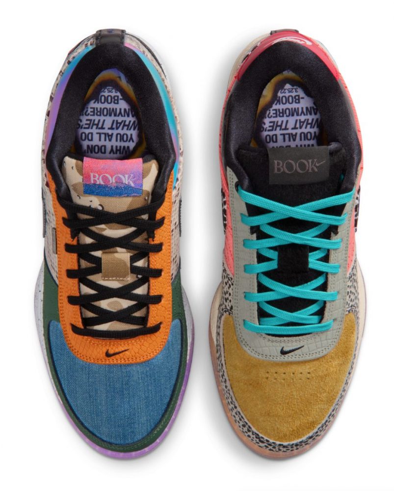 La idea de tomar elementos de muchas versiones anteriores y combinarlos en un solo par se remonta a las mítica «What The» Dunk de 2007, que aquí se trasladan al mundo del baloncesto con una mezcla de colores, materiales y detalles icónicos de las distintas ediciones de las Book 1 que se han visto desde su lanzamiento.