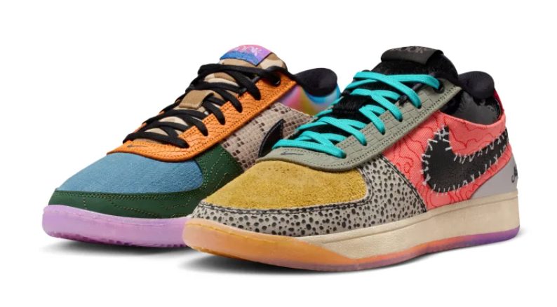 Cada panel de las Nike Book 1 «What The» cuenta una historia. Verás referencias a prints como Safari, detalles inspirados en colorways exclusivos, overlays de piel exótica o denim que han aparecido a lo largo de este primer ciclo de la silueta.