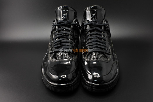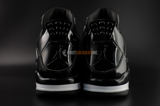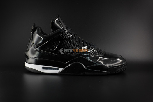 Las Air Jordan 11Lab4 están cubiertas por completo de una capa de charol negro y que se caracteriza por la ausencia de otros colores, solo encontramos en la suela, un pequeño detalle en blanco que le da personalidad. En este modelo encontramos una fusión de elementos de las Air Jordan XI, su característico material, implantados en la silueta de las Air Jordan IV.
