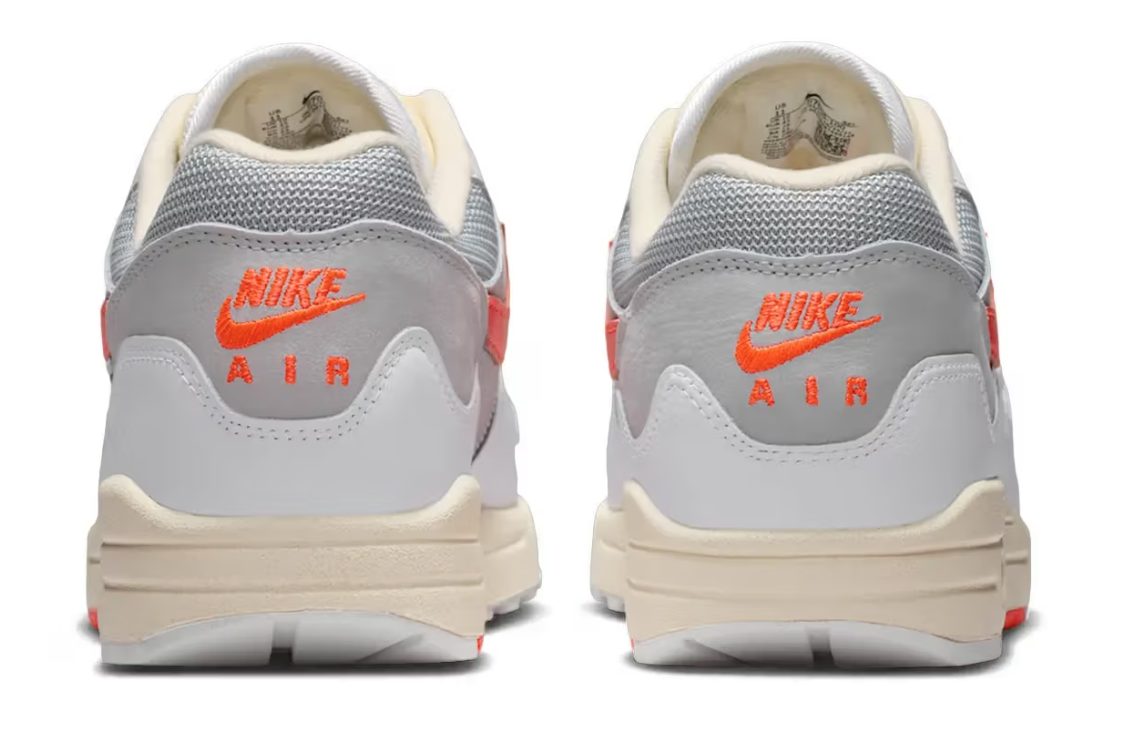 Esas nuevas AM1 llegan en colorway «White/Hyper Crimson», apostando por una base neutra con acentos naranjas mucho más sutiles que en versiones anteriores.