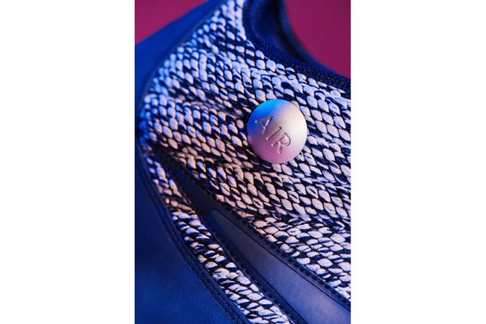 Por las imágenes que hemos visto sabemos que las zapatillas vendrán en al menos dos colorways diferentes, y tendrán una estructura superior fabricada en tejido tweed -un tejido de lana áspera y elástica-, un guardabarros de gamuza, suela opaca y el botón AIR en la parte derecha a la altura del tobillo.