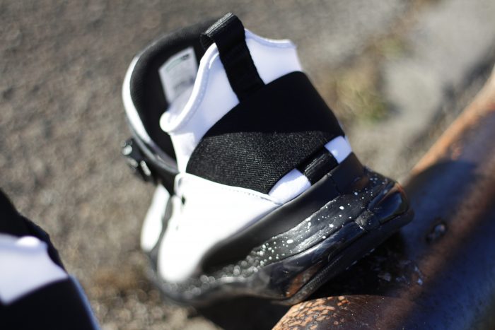 Una de las únicas pegas que hemos encontrado se encuentra en el sistema de cierre con hebilla, no en su funcionamiento, sino en que al apretarlo y quedar ceñido, este acaba dejando una pequeña marca de «suciedad» que se va acumulando alrededor en la parte interior del efecto sock. No obstante esto es algo que no se ve con las zapatillas puestas, sino que tienes que despegar la lengüeta para apreciarlo, es una pequeña anotación para que los sneaker freaks sepan donde deben hacer más incapié a la hora de cuidarlas.