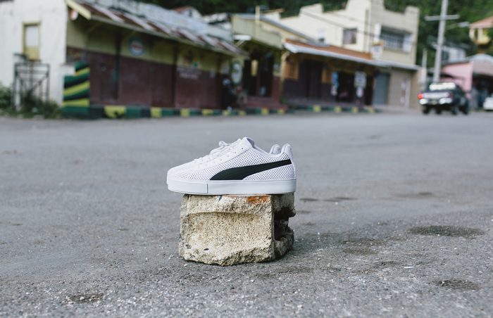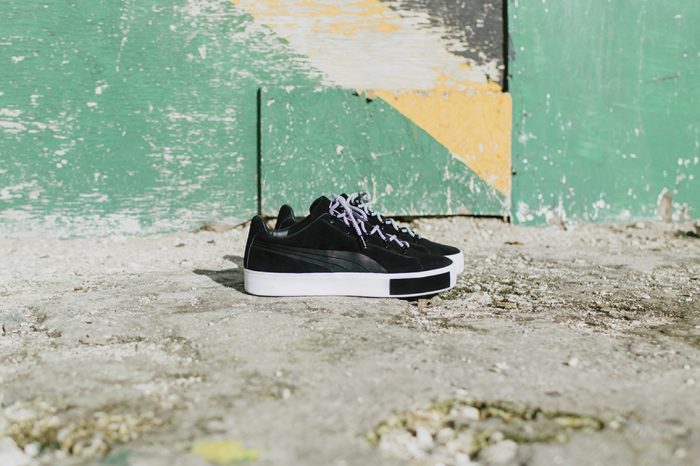 Uno de los pilares de la colección es la zapatilla PUMA Match que se ha modificado para salir en tres modelos distintos: uno será su forma clásica con un estampado de salpicadura de pintura, otra vendrá con tiras de velcro y la última tendrá una suela traslúcida colorida. También se ha rediseñado para la ocasión la PUMA Court Platform, hecha con un tejido de punto de calidad mientras que el empeine irá adornado con cuero.