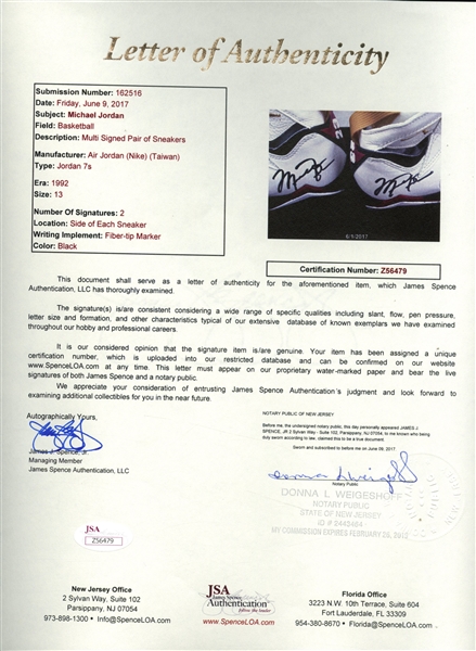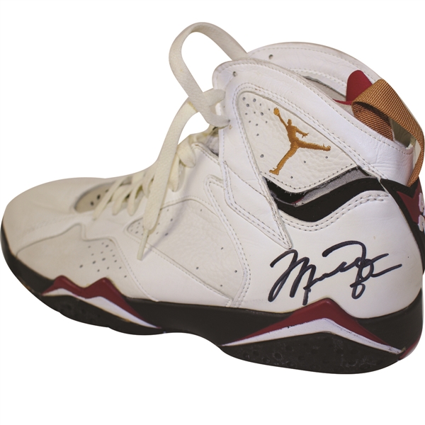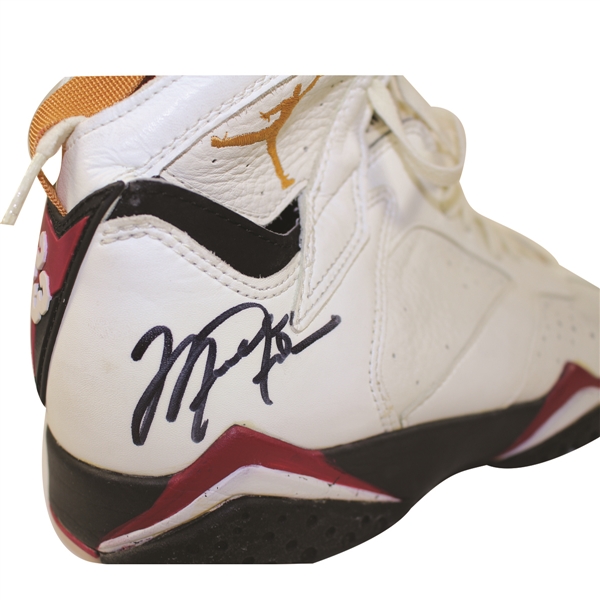 En concreto se trata de una de las Air Jordan 7 que MJ usó en la temporada 92-93 de la NBA. A pesar del tiempo, las zapatillas presentan un estado excepcional, y no sólo eso, ya que también cuentan con el autógrafo de His Airness. Y para el que no se fie, el lote cuenta con todos los certificados para verificar su autenticidad.
