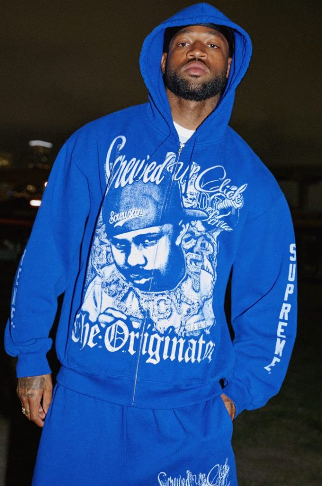 La colección incluye una amplia gama de piezas: camisetas de fútbol con la imagen de DJ Screw, hoodies con gráficos tipo spray, camisetas con los logos de Screwed Up Click (S.U.C.) y accesorios bastante chulos.