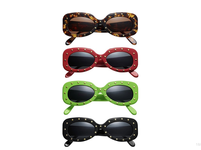 Cada una de las gafas de sol que componen la colección cuenta con lentes antirreflectantes y sus marcos han sido fabricados a mano en Italia. El modelo Royale cuenta con detalles de estrellas doradas y el logo de Supreme en el lateral.