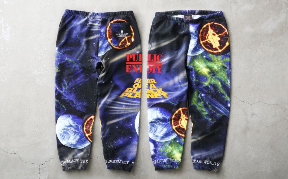 Algunas de las prendas clave de esta colaboración son las sudaderas con capucha, monederos exclusivos de Undercover, zapatos de Dr. Martens decorados con reminiscencias al grupo de raperos, collares de oro y hasta una alfombra del álbum ‘Fear of a Black Planet’.