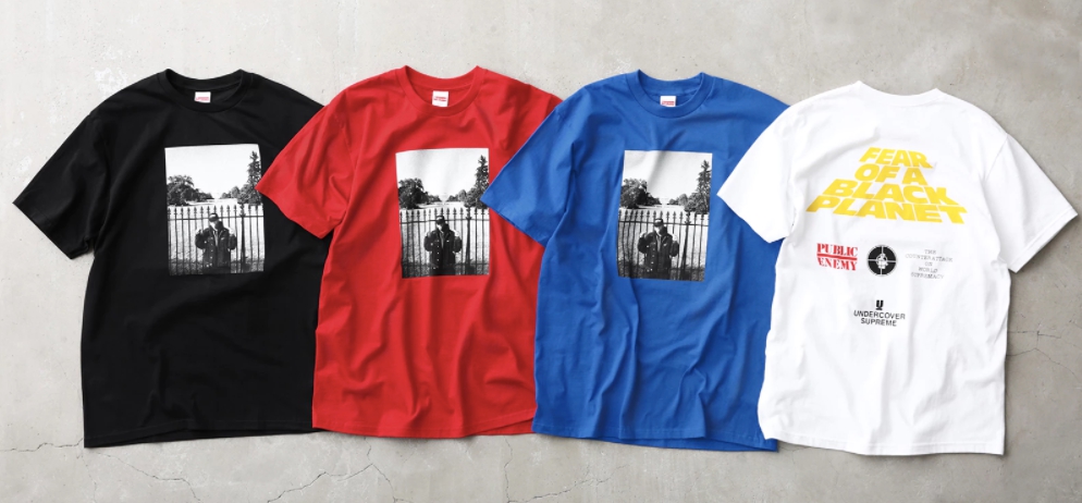 Varias camisetas presentan el nombre del grupo con la característica tipografía de Public Enemy y de la portada de su álbum antes mencionado, que concretamente está cerca de cumplir 28 años desde su lanzamiento, y una colaboración con Supreme parece un buen homenaje. También hay que mencionar que parte de los ingresos que se logren con esta colección serán donados a la Unión Americana de Libertades Civiles.