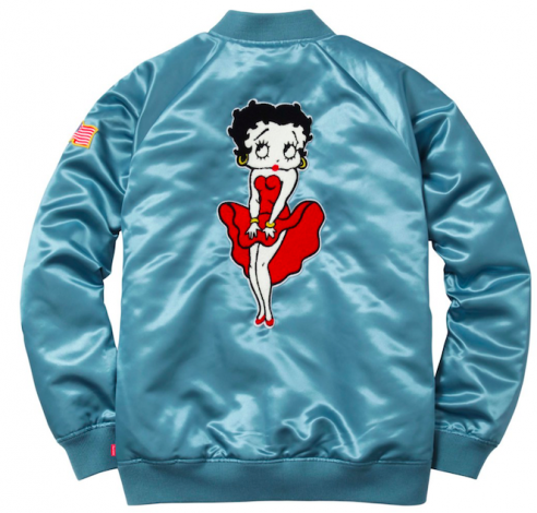 Los dibujos animados cobran protagonismo con dos clásicos; el icónico conejito de la casa Playboy reaparece en numerosas prendas, y a él se une una nueva apuesta con la que se proponen reencontrar a sus seguidores con la sexy Betty Boop. Prueba de su acierto es esta bomber satinada en tonos azules con el dibujo a la espalda.