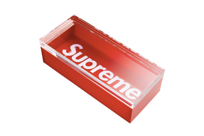 Pero las excentricidades no acaban aquí. Y es que Supreme ha querido recordarnos que, una vez más, pueden vender cualquier cosa que lleve su box logo. Buena prueba de ello es su nueva colección de accesorios, en la que encontramos piezas únicas como un casco de moto, un cuenco para comer ramen, una bolsa de agua caliente o un puto ladrillo (sí, habéis leído bien).